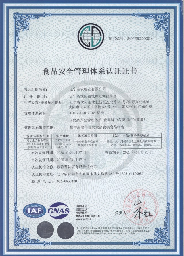 食品安全认证证书