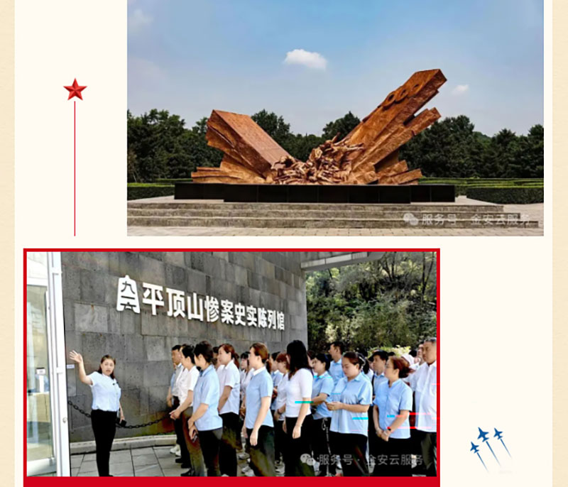山河虽已换新,奋斗初心不改。金安物业全体人员将以此次参观为新起点,把纪念碑前的哀思转化为物业服务的实干动力,将纪念馆内的深刻感悟融入服务品质提升的每一个环节 —— 把对英烈的致敬,落实到每日安保巡检的细致排查中,体现在设施维修的高效响应里,践行于业主需求的精准对接上,深耕于全域保洁的洁净维护间,保障于会务服务的细节衔接中,守护于食堂膳食的健康供应内。金安物业以 “让业主满意” 为根本标尺,将英烈追求的 “美好生活”,通过全维度、高品质的物业服务,切实转化为每位业主的安心舒心体验,回应业主的信任与托付,彰显 “红色基因赋能物业,专业服务守护初心” 的服务精神。